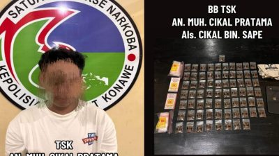 KENDARI : INPEDIA.ID – Satuan Reserse Narkoba Polres Konawe menangkap seorang pria berinisial MC (19),…