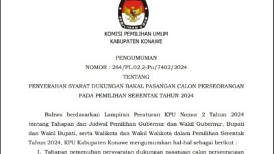 InPedia.id : KONAWE – Komisi Pemilihan Umum (KPU) Konawe umumkan tahapan pemenuhan persyaratan dukungan pasangan…